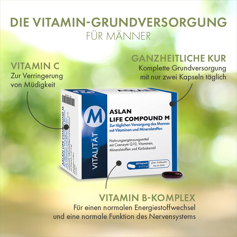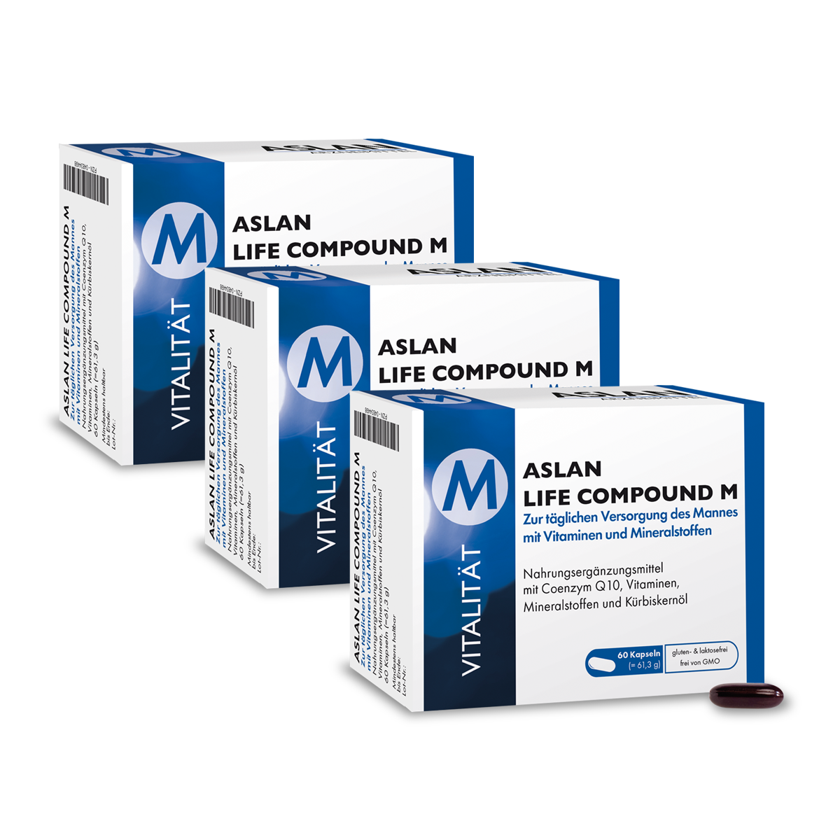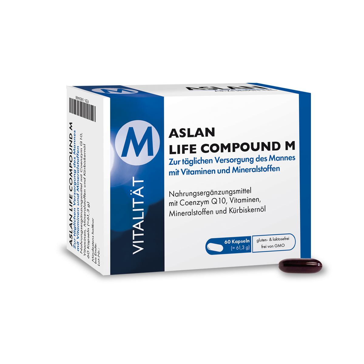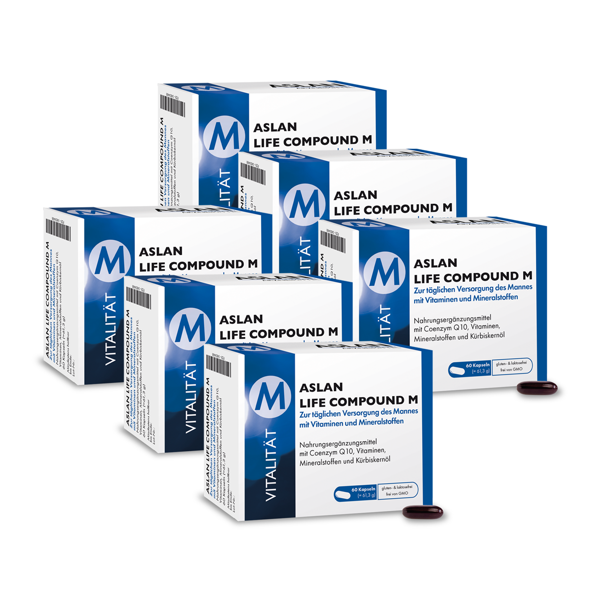 Kürbiskernöl, Überzugsmittel Gelatine (Rind), Magnesiumoxid, Feuchthaltemittel Glycerin, Calciumascorbat, Sojaöl teilhydriert, gereinigtes Wasser, RRR-Alpha-Tocopherol, Coenzym Q10 (Ubichinon), Dicalciumphosphat Dihydrat, Trägerstoffe Maltodextrin & Sonnenblumenöl, Sojaöl hydriert, Eisenbisglycinat, Niacinamid, Emulgator Sojalecithin, Natriumselenat, Cyanocobalamin, Calciumpantothenat, Olivenöl, Pyridoxinhydrochlorid, ß-Carotin, Riboflavin, Thiaminnitrat, Farbstoffe Eisenoxide, Farbstoff Carminlack, Vitamin-A-Palmitat, Pteroylmonoglutaminsäure (Folsäure), D-Biotin, mittelkettige Triglyceride, Cholecalciferol.